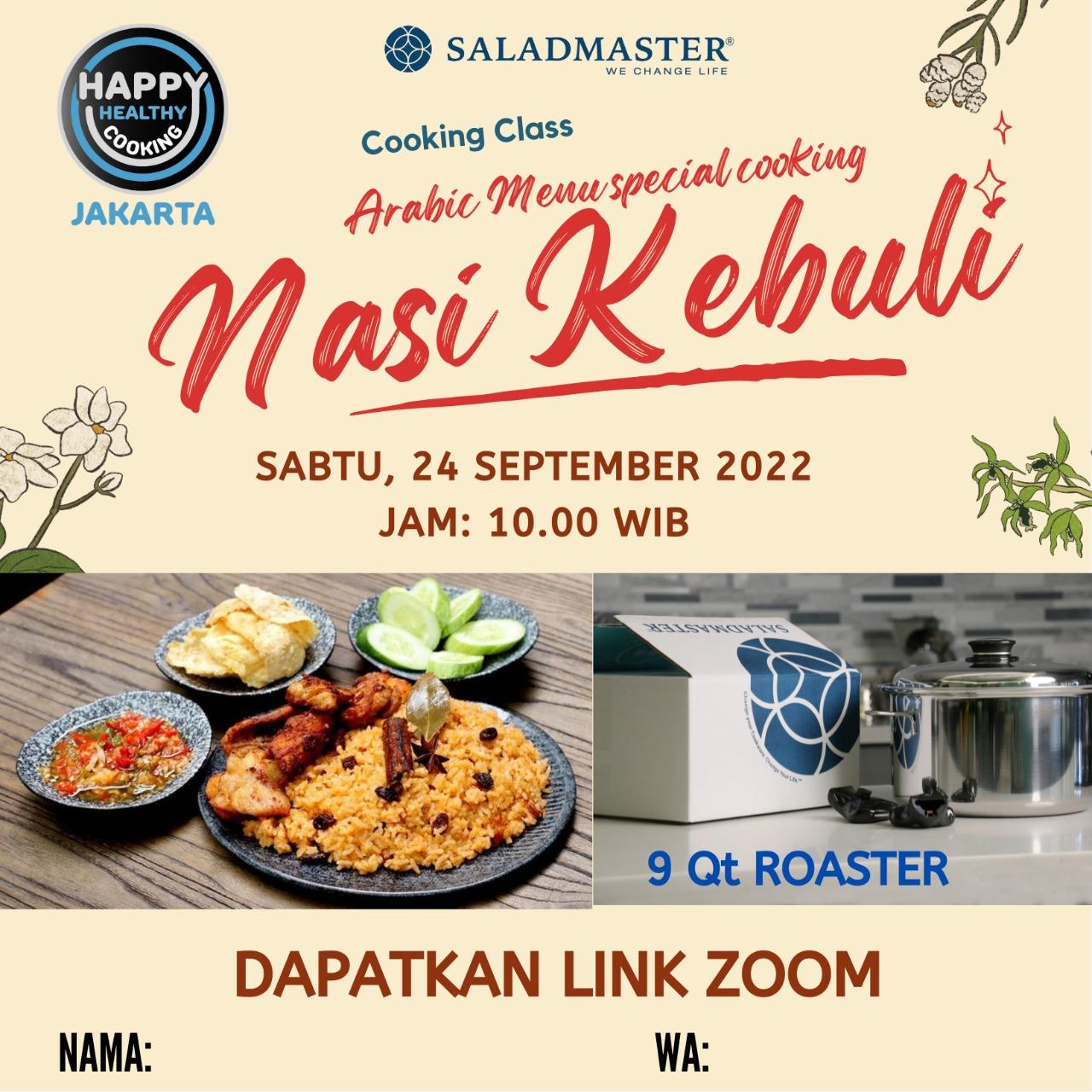 Healthy cooking class by SALADMASTER invites you to an Arabic special Cooking Menu: Nasi Kebuli via the Zoom application.